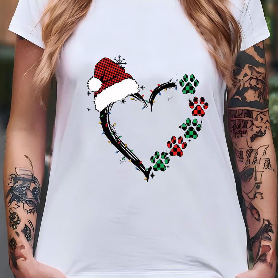 Christmas Heart Paw Shirt, Dog Lover Hoodie, Dog Christmas Shirt, Dog Heart Shirt, Santa Dog Shirt, Dog Christmas Gift T-shirt