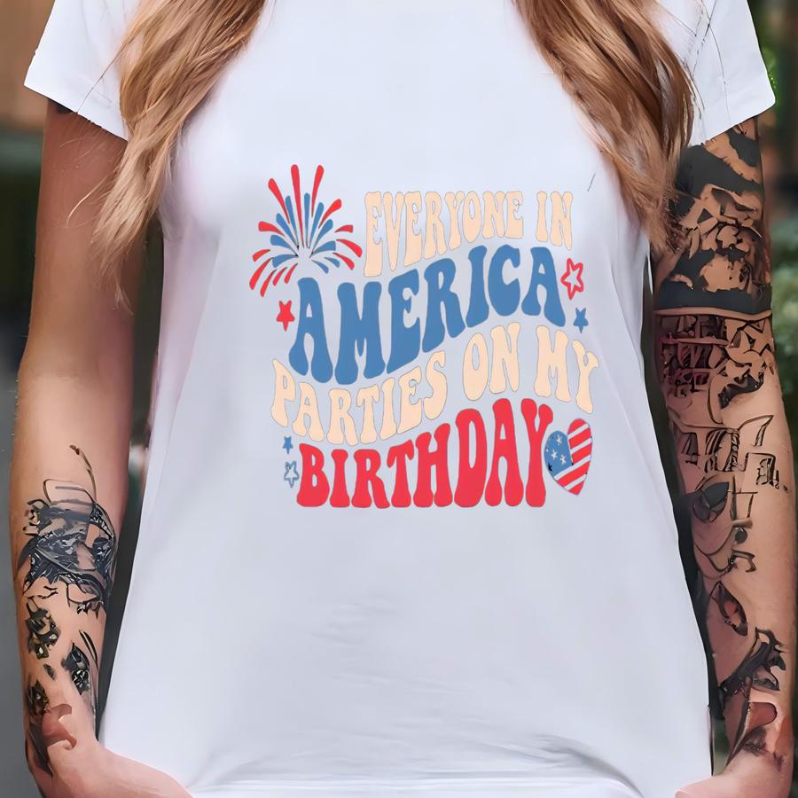 Everyone In America Parties On My Birthday Shirt, 4th Of July Birthday Shirt, Independence Day Shirt, Birthday Gift, Birthday Party Shirt T-shirt