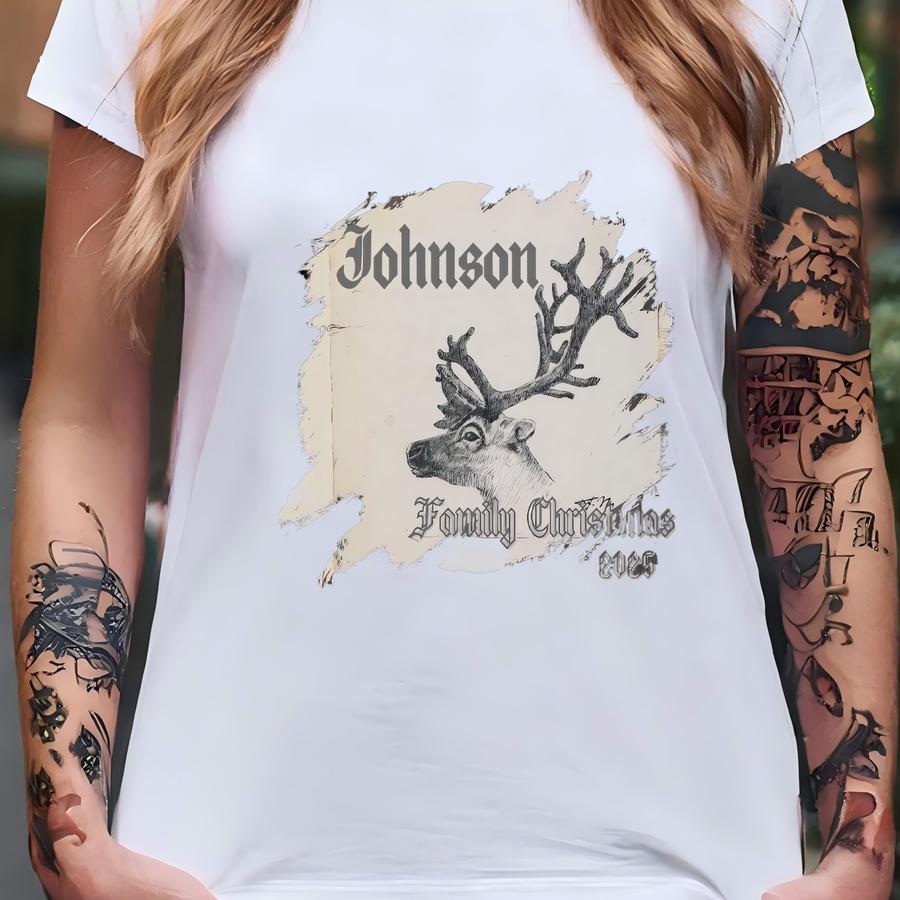 Custom Family Reindeer Caribou Art Sketch Retro Vintage Style, Christmas Apparel Sweatshirts Tshirt T-shirt
