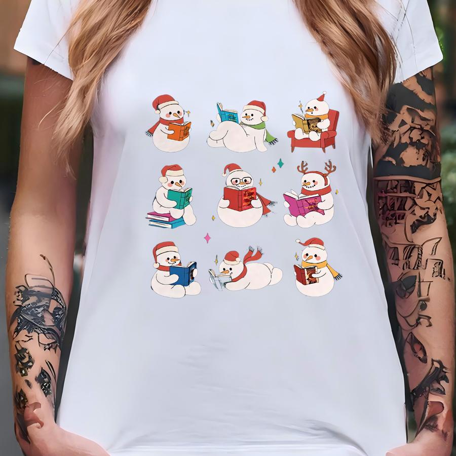 Christmas Book Lover Snowman Hoodie, Snowman Reading Book Shirt, Gift For Teacher, Book Lover Gift, Winter Holiday Bookish Sweater T-shirt