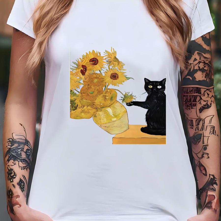 Comfort Van Gogh Cat Shirt, Van Gogh Irises Cat Tshirt, Black Cat Tee, Funny Cat Shirt, Ladies Shirts, Funny Gift Idea, Painter Shirt T-shirt