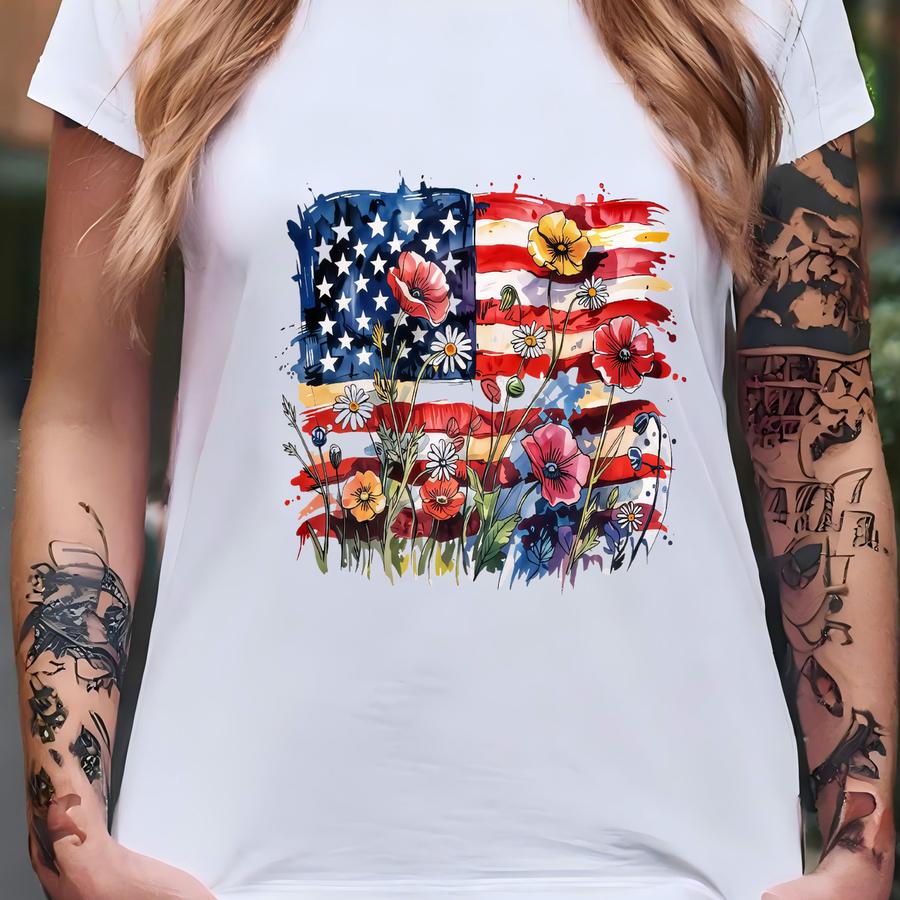 Vintage Floral Usa Shirt, Patriotic Shirts, Independence Shirt, 4th July For Women, 4th Of July Flag, Usa Hoodie, Floral American Flag T-shirt