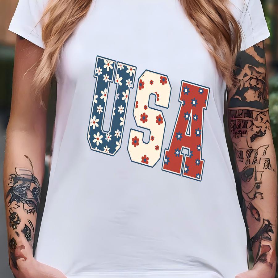 Comfort Floral Usa Shirt, American Girl Shirt, Usa Est 1776 Shirt, Girly 4th Of July Shirt, Patriotic Women Shirt, Flower Usa Shirt T-shirt