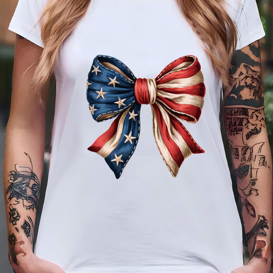 4th Of July Shirt, Coquette American Flag Shirt, Usa Bow Shirt, 4th Of July Tee, Women's Patriotic Shirt, Red White And Blue T-shirt