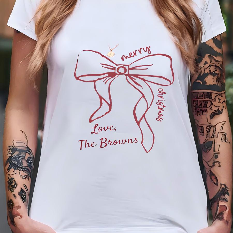 Custom Family Christmas Bow Minimal Tshirt Matching Holiday Shirts T-shirt