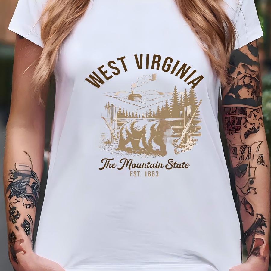 Retro State Of West Virgina Bear Mountains Cabin Sweatshirt Graphic Neutral Unisex Christmas Gift, Winter Apparel Tourist Travel Sweatshirt T-shirt