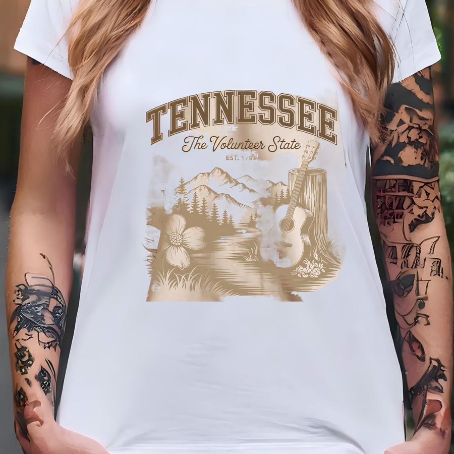 Retro State Of Tennessee Guitar Mountains Minimal Sweatshirt Graphic Neutral Unisex Christmas Gift, Winter Apparel Tourist Travel Sweatshirt T-shirt