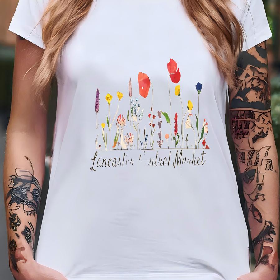 Central Market Pennsylvania Reusable Farmers Market Produce Canvas Tee Sustainable Mom Gift Fruits Vegetables Floral. T-shirt