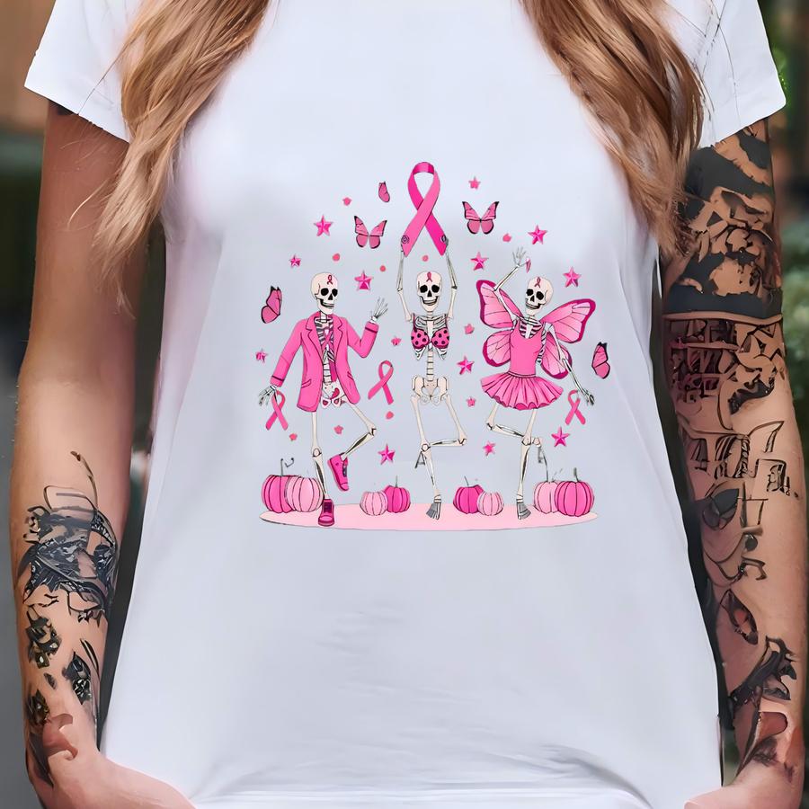 Breast Cancer Awareness Sweatshirt | In October We Wear Pink Skeleton Crewneck | Support Ribbon Pullover | Cute Spooky Fall Sweater T-shirt