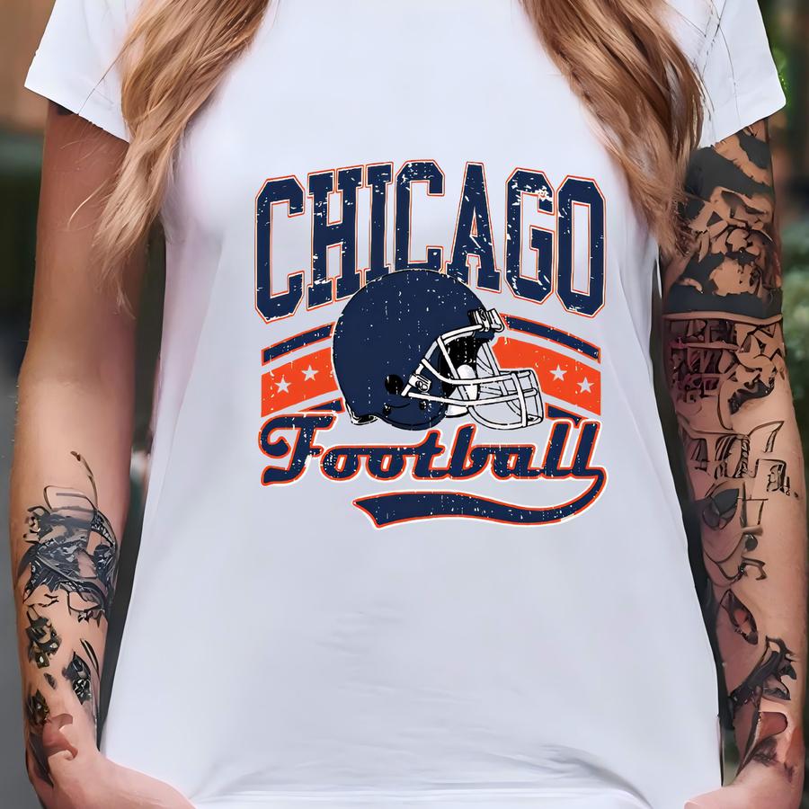 Chicago Football Hoodie – Vintage Style Helmet Graphic Tee, Game Day Apparel For Fans, Retro Chicago Gift For Men Women T-shirt