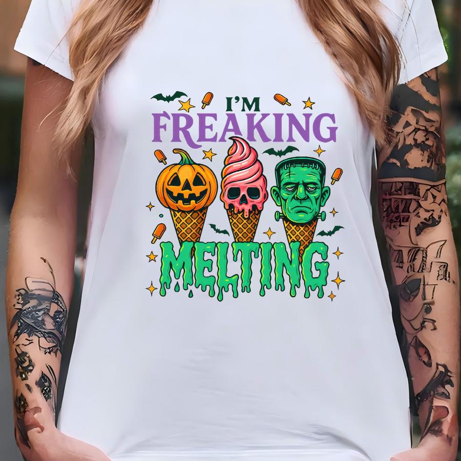 Funny Halloween Shirt, I’m Freaking Melting Hoodie, Summerween Graphic Tee, Unisex Spooky Season Shirt, Ice Cream Horror Tshirt, Fall Shirt T-shirt