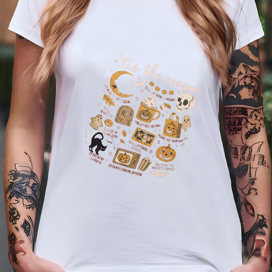 Tis The Season Halloween Shirt | Fall Pumpkin Spice Ghost Cat Witch Trick Or Treat Tee | Spooky Season Autumn Graphic Hoodie,halloween Gift T-shirt