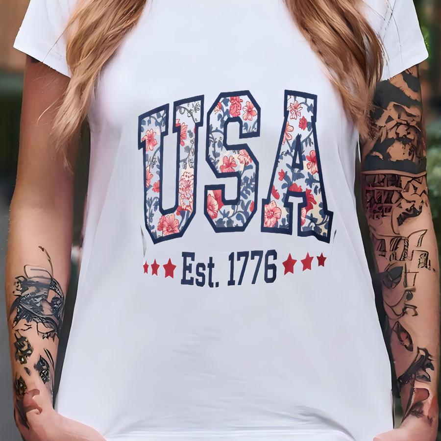 Usa Floral Flowers Hoodie, Floral American Flag Shirt, Independence Day Gift Shirt, 4th Of July Shirt, Patriotic Shirt, Big Usa Floral Tee T-shirt