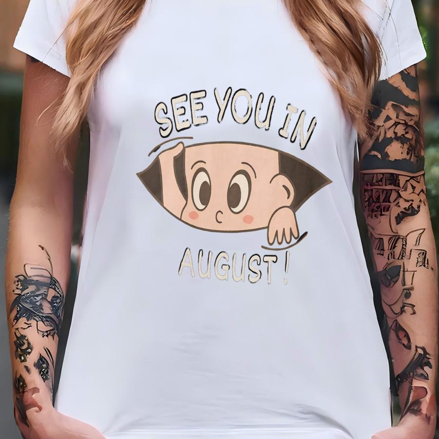 See You In August Shirt, Pregnancy Announcement Shirt, Baby Reveal Tee, Maternity Gift, Due Date Shirt, Funny Bump Reveal Tee T-shirt