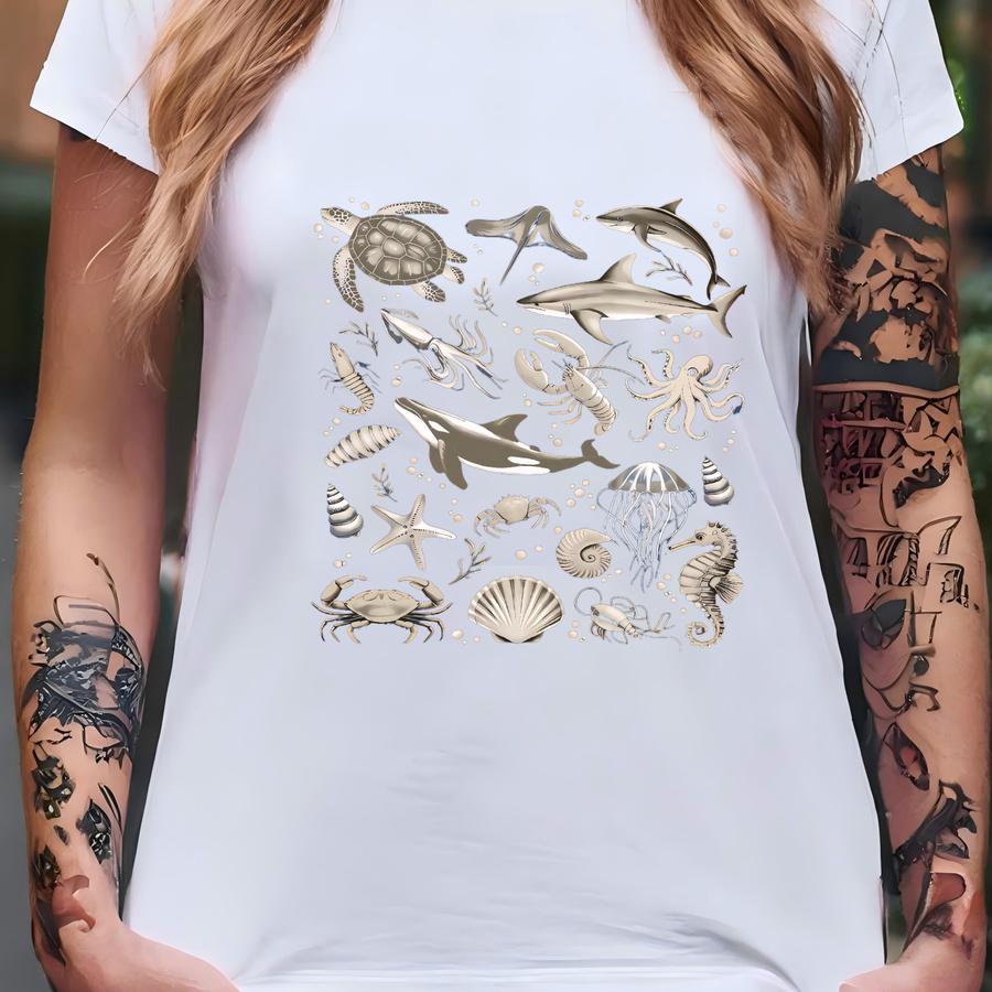 Sea Animal 90s Retro Tshirt, Ocean Nature Shirt, Sealife, Ocean, Whale, Orca, Turtle, Dolphin , Unisex Adult Tee, Ocean Gifts T-shirt