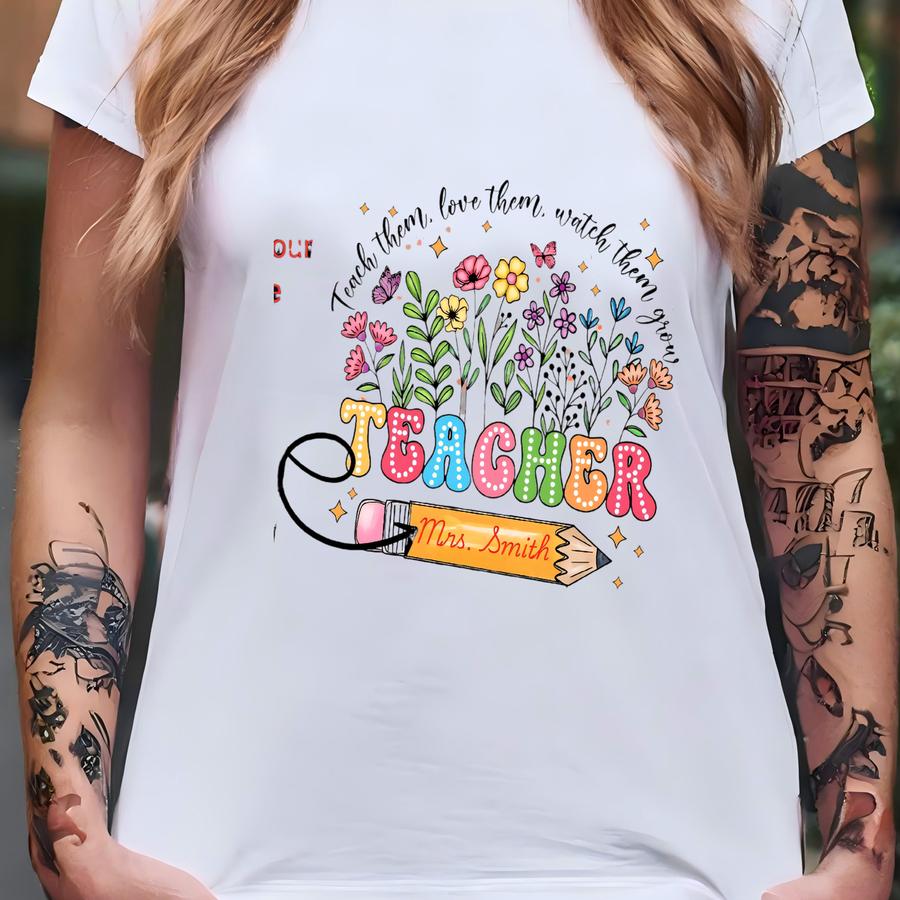 Custom Teach Them Love Them Watch Them Grow Tee, Customized Teacher Name Tee, Teacher Appreciation, Floral Teacher Tee T-shirt