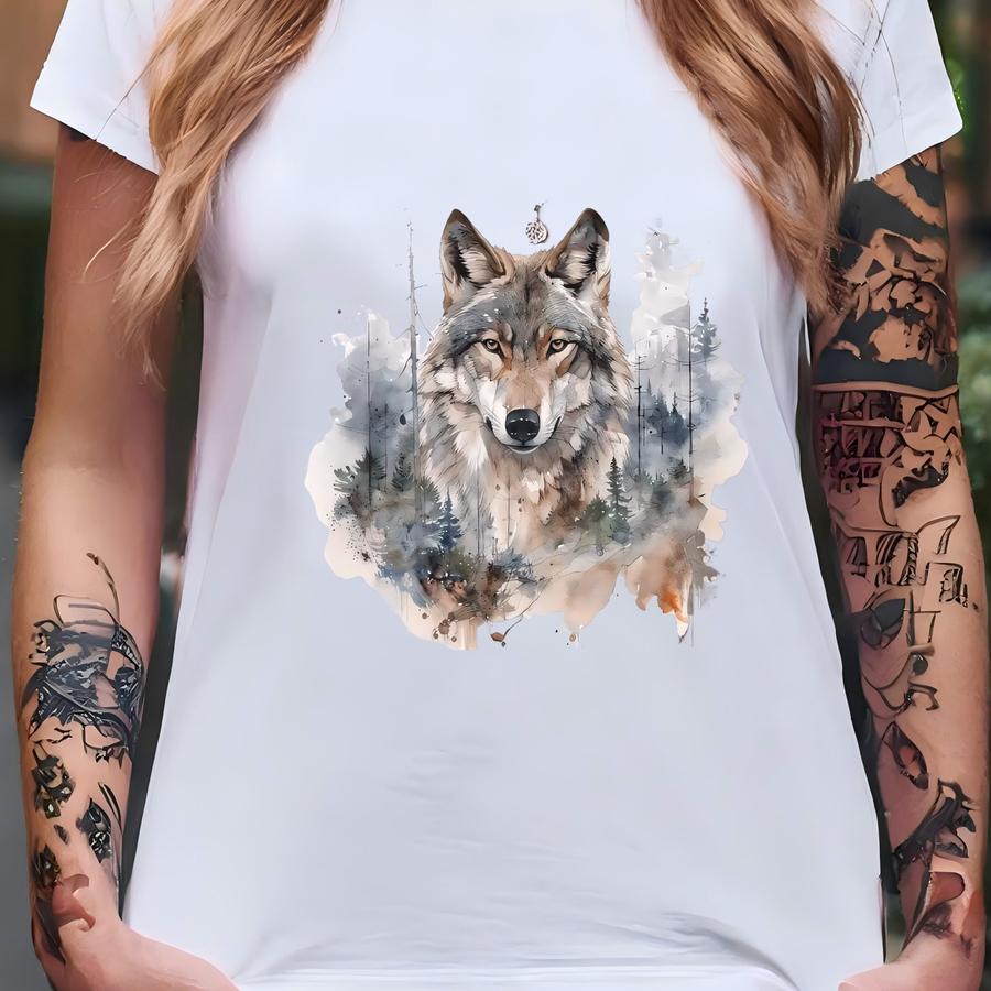 Watercolor Wolf In Forrest Vintage Style Sweatshirt Aesthetic Style , Winter Sweater, Christmas, Fall T-shirt