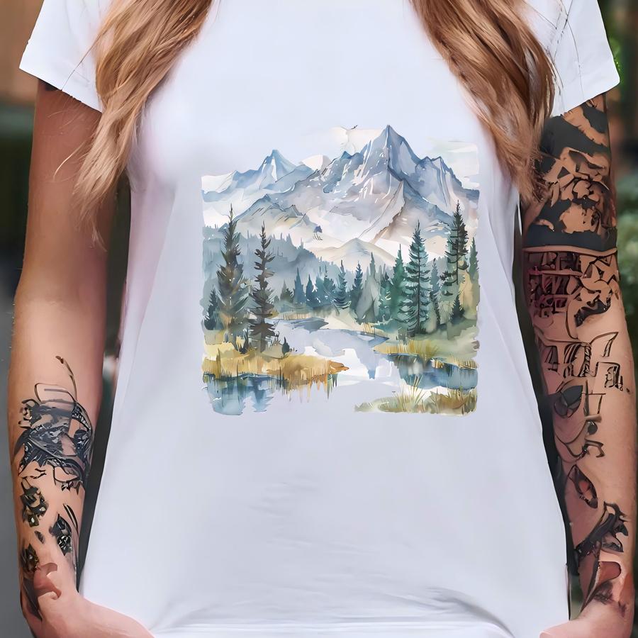 Retro Snowy Mountain Scene Watercolor Art Vintage Sweatshirt Aesthetic Style T-shirt