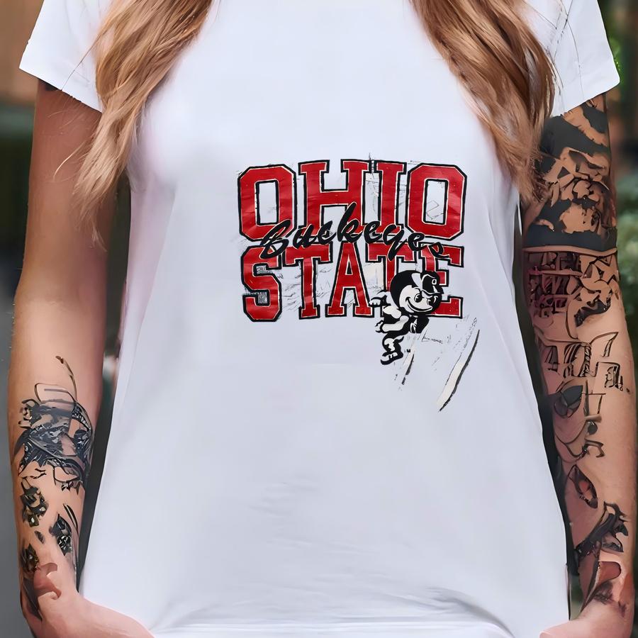 Vintage Ncaa Ohio State All Overprint Sweatshirt Ohio State Pullover Sweater Ohio State Crewneck Jumper Ohio State Print Graphic Logo White T-shirt