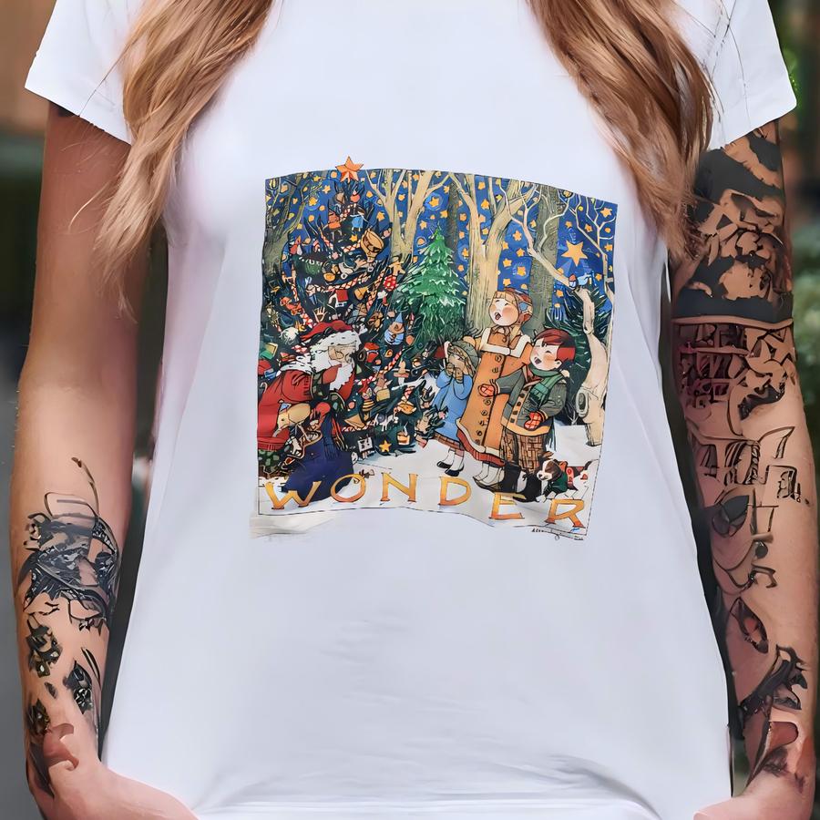 Vintage Wonder Santa Christmas Holiday Sweatshirt Santa Crewneck Jumper Santa Pullover Sweater Santa Graphic Print Christmas Gift White T-shirt