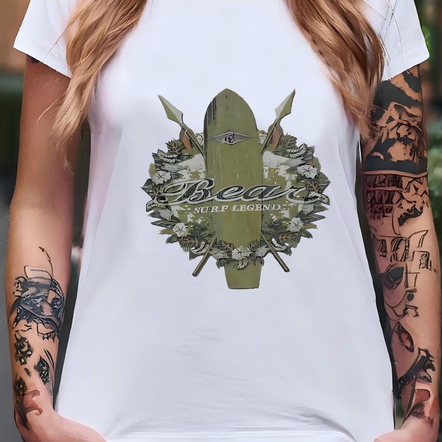 Vintage Bear Surf Boards Hawaii Sweatshirt Medium Bear Surf Board Printed Logo Crewneck Bear Surf Hawaii Surfer White Sweater Size M T-shirt