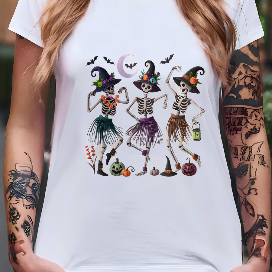 Dancing Skeleton Witches Hoodie: Spooky Halloween Graphic Tee T-shirt