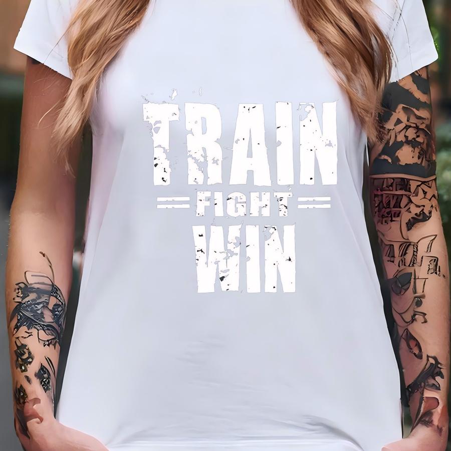 Football Tee Shirts-train Fight Win Adult Football Short Sve Crew Neck Fine Jersey Tee-hoodies-fitness Tee-dad Gift-vintage Tee Shirts T-shirt