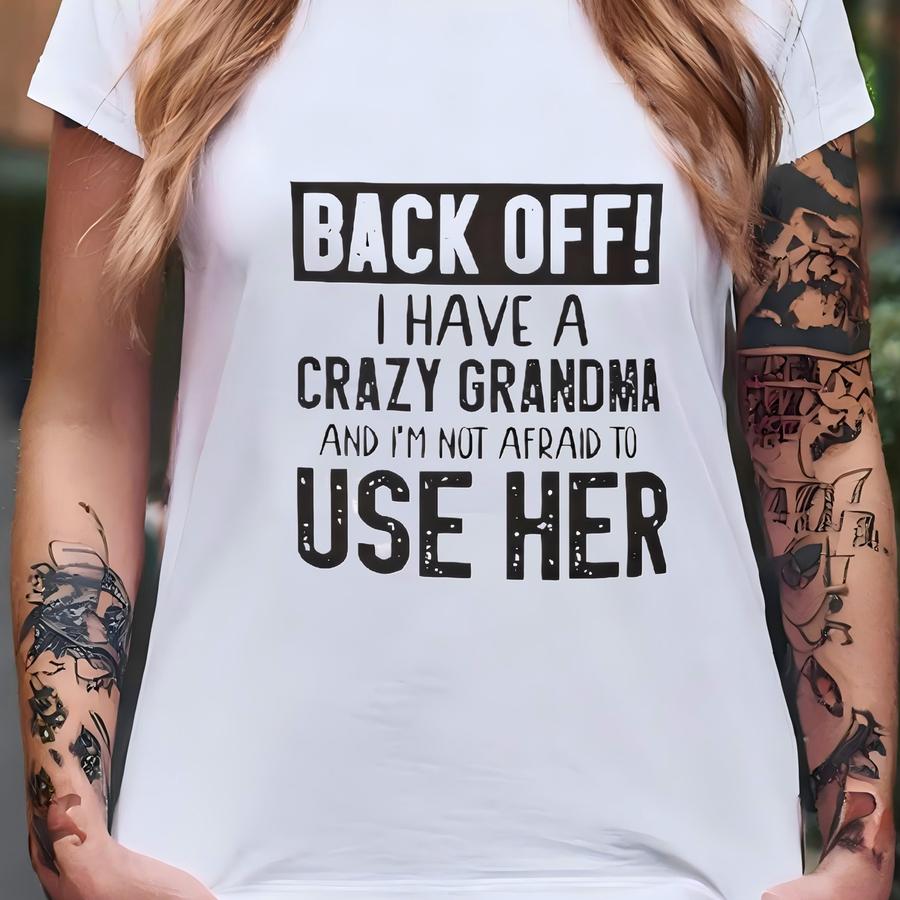 Toddler Short Sve Tee-unisex Tee-back Off! I Have A Crazy Grandma And I'm Not Afraid To Use Her-hoodie- T-shirt