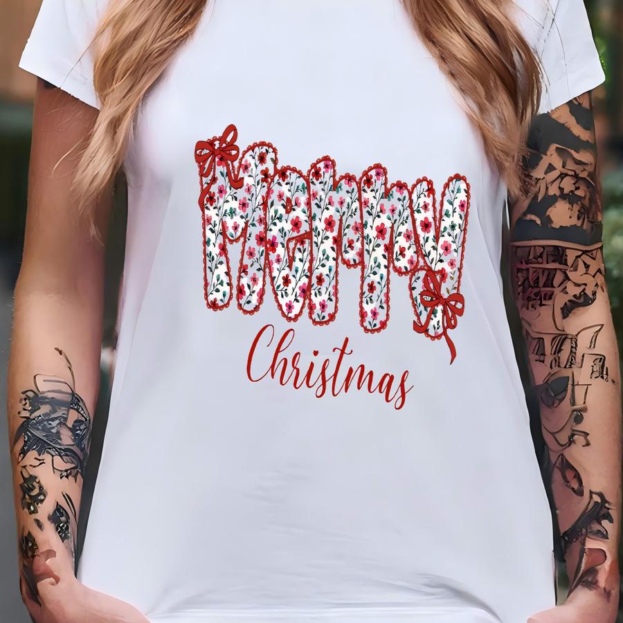 ® Merry Christmas Floral Shirt, Merry Christmas Family Shirt, Women Christmas Shirt, Holiday Shirt, Merry Christmas Gift Shirt T-shirt
