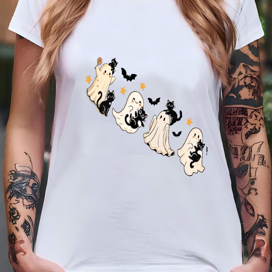 Black Cat With Ghost Sweatshirt, Retro 90s Halloween Shirt, Fall Crewneck Sweatshirt, Black Cat Sweater, Halloween Black Cat Hoodie T-shirt