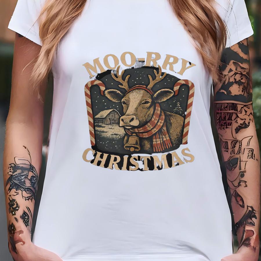 Cow Christmas Sweatshirt | Funny Moo-rry Christmas Holiday Crewneck T-shirt