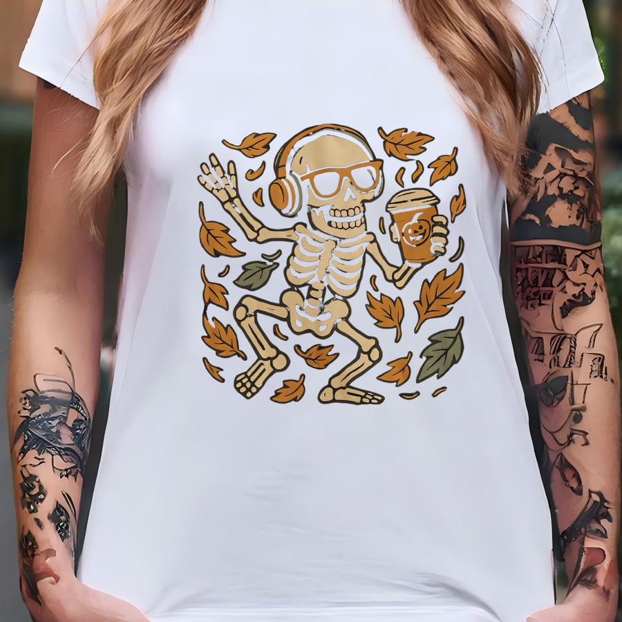 Dancing Skeleton Halloween Shirt | Pumpkin Coffee Fall Tee | Adult And Youth Sizes T-shirt