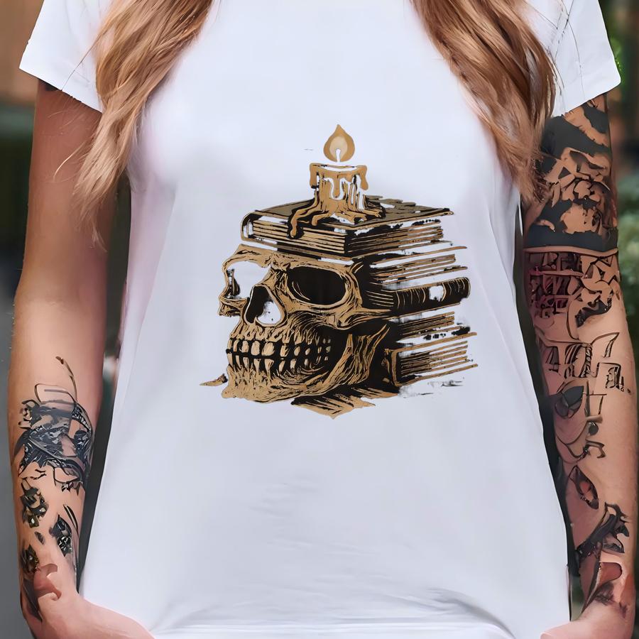 Skull And Candle Halloween Shirt | Gothic Book Lover Tee | Adult And Youth Sizes T-shirt