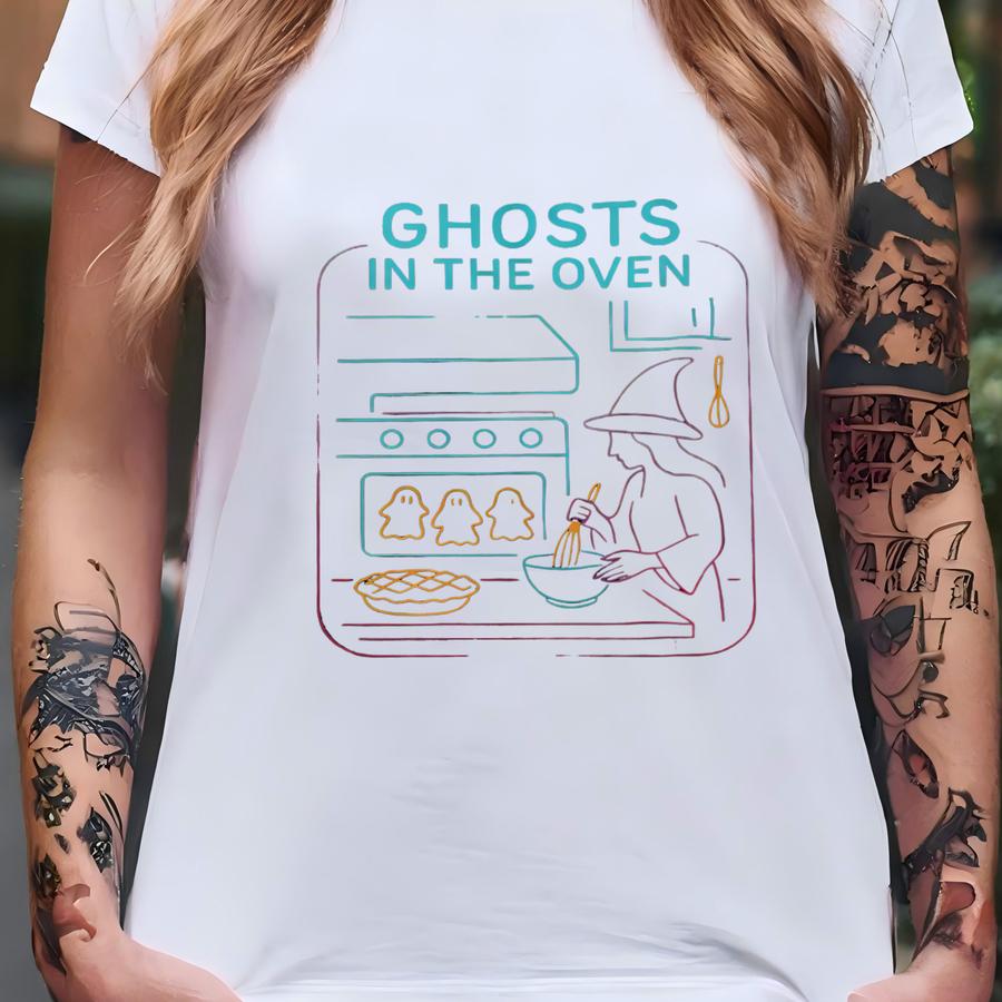 Ghosts In The Oven Shirt | Funny Baking Witch Halloween Graphic Tee | Adult And Youth Spooky Outfit T-shirt