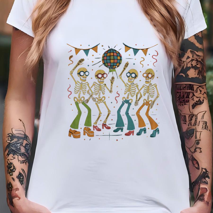 Disco Skeleton Dance Shirt | Retro Halloween Party Tee | Adult Youth Sizes T-shirt