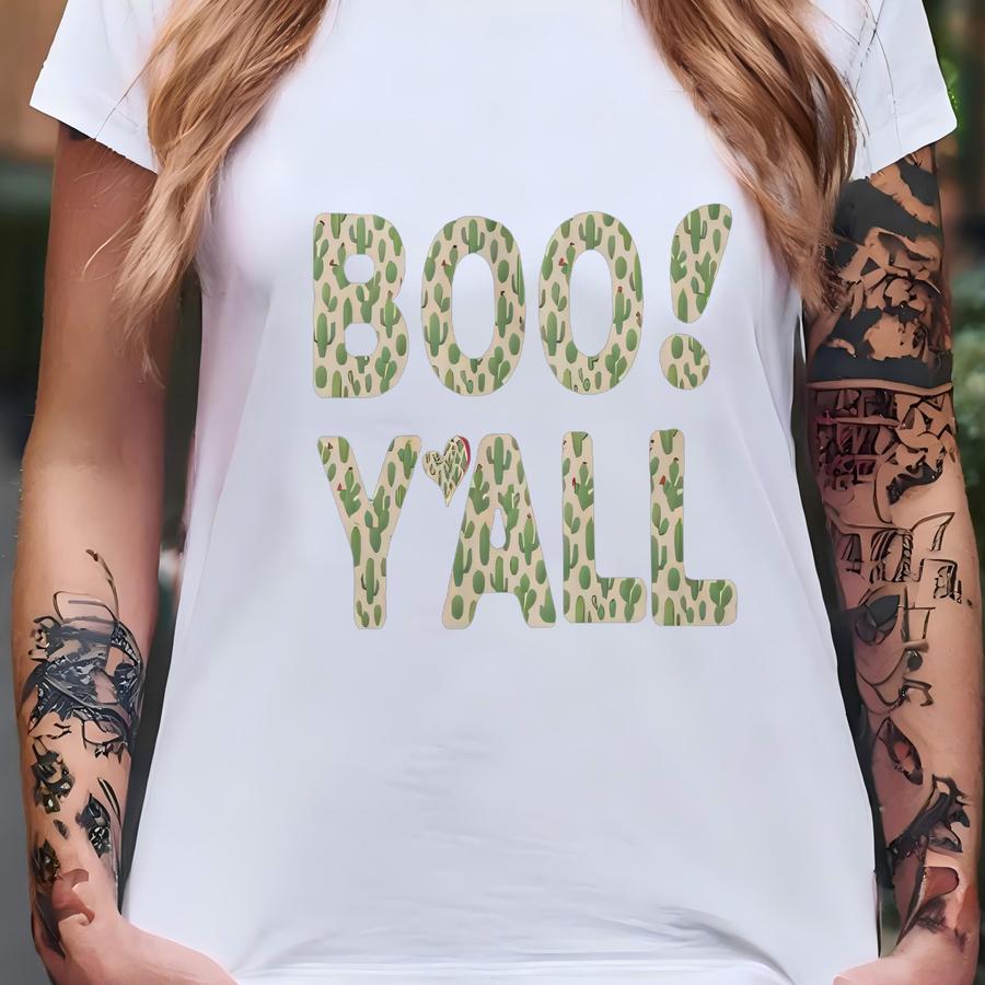 Boo Yall Shirt | Cactus Print Western Halloween Tee | Southern Country Fall Hoodie T-shirt