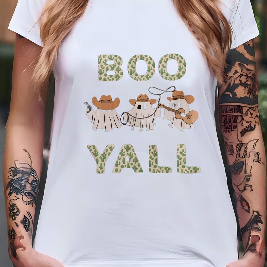 Boo Yall Shirt | Cowboy Ghost Band Western Halloween Tee | Funny Country Fall Hoodie T-shirt