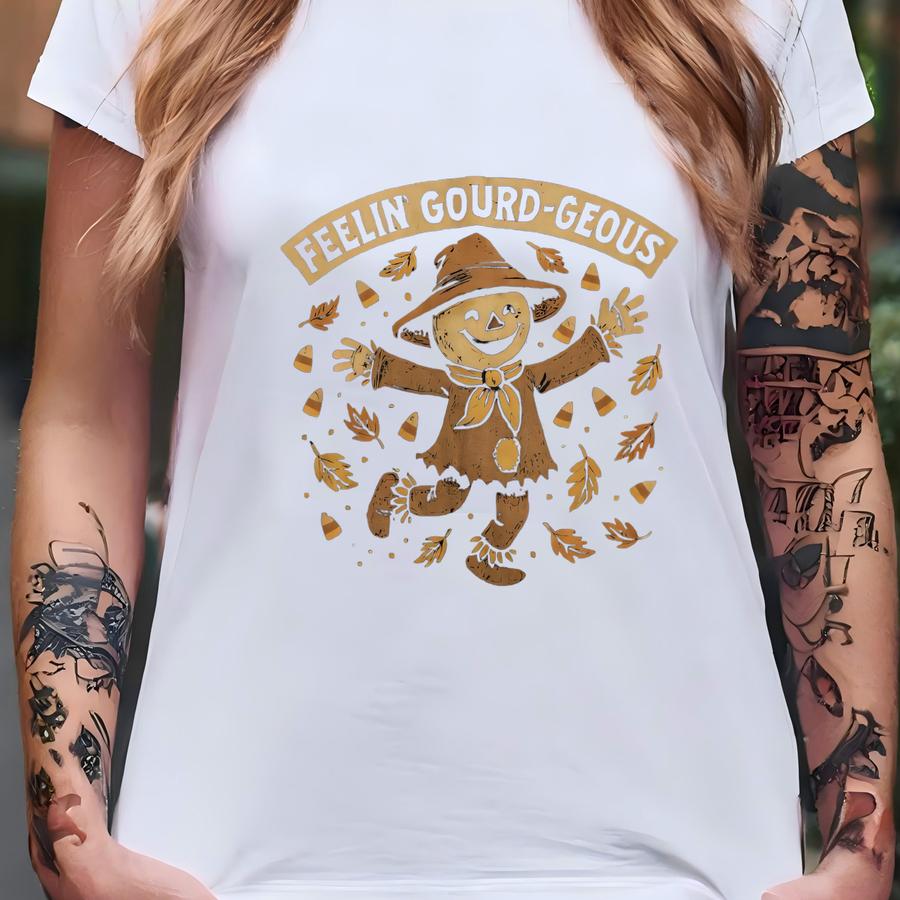 Feelin Gourd-geous Shirt | Cute Scarecrow Fall Tee | Autumn Pumpkin Patch Outfit T-shirt