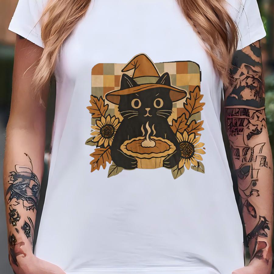 Black Cat Pumpkin Pie Shirt | Witchy Fall Plaid Tee | Autumn Suower Cozy Gift T-shirt