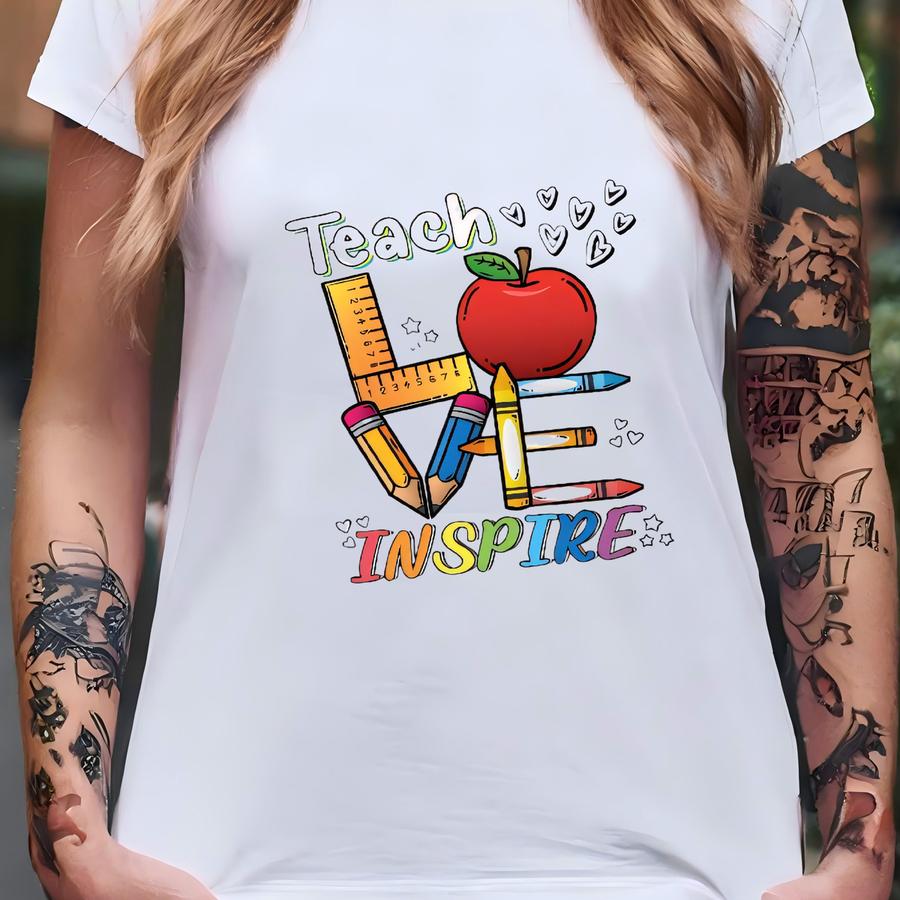 Teach Love Inspire Shirt, Teacher Apple Ruler Tee, Back To School, Teacher Appreciation Gift T-shirt