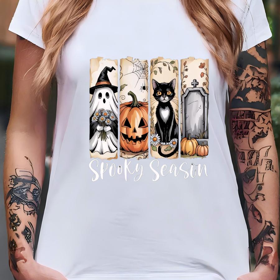 Spooky Season Sweatshirt, Ghost, Pumpkin Black Cat Halloween Hoodie T-shirt