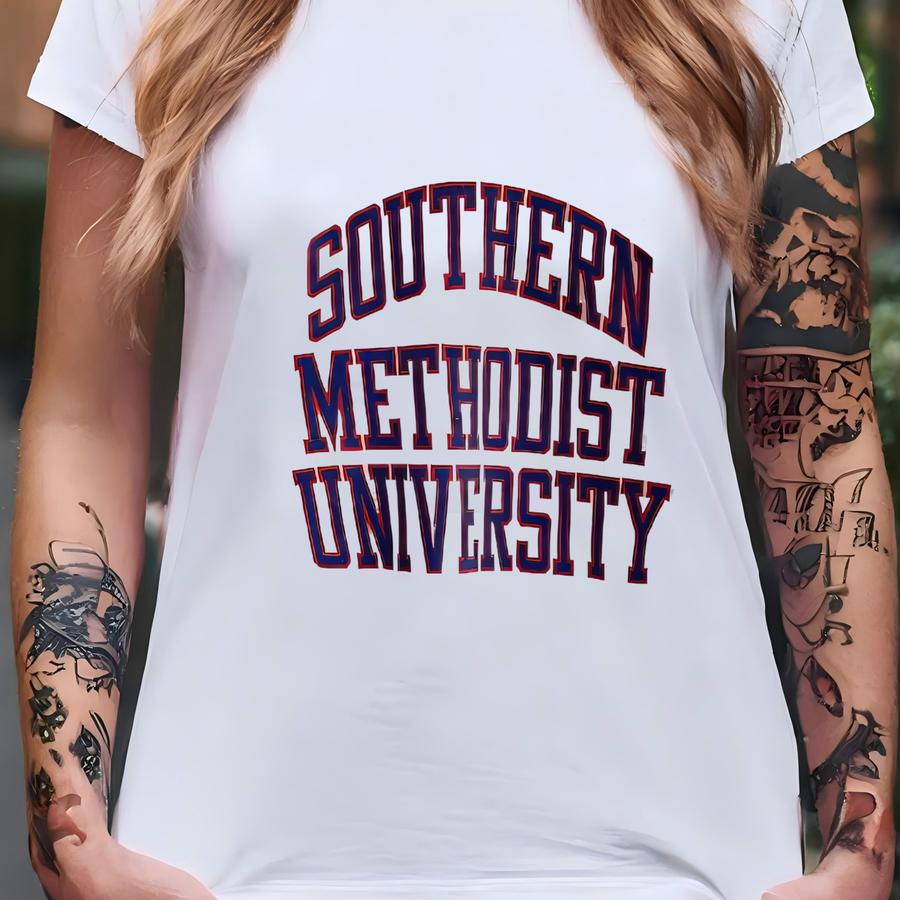 Vintage 90s Smu Mustangs Crewneck Sweatshirt - Southern Methodist University - Ncaa - Print Logo - Grey Color - Men’s L T-shirt