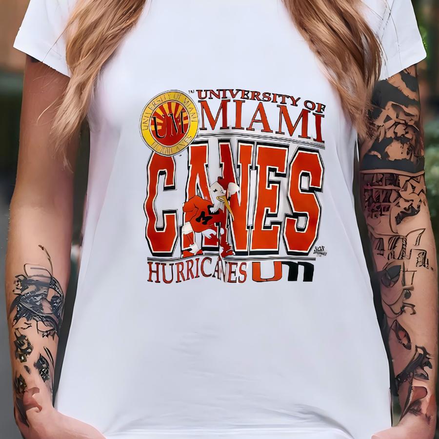 90s Ncaa University Of Miami ‘hurricanes’ Crewneck Sweatshirt Print Logo White Color Men’s L T-shirt
