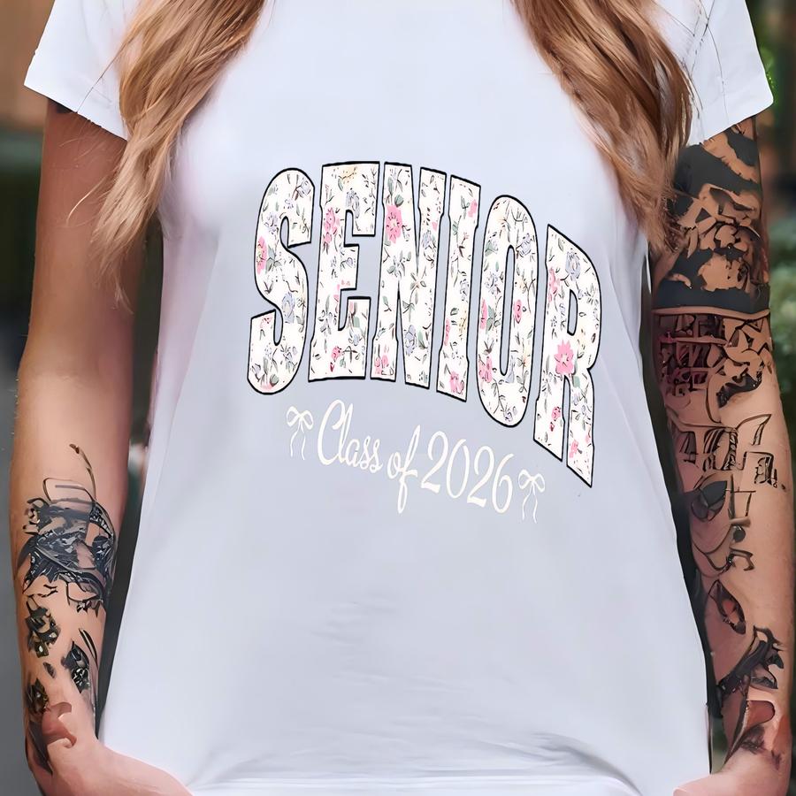 Custom 2026 Senior Shirt Floral, Class Of 2026 Senior Shirt,senior Gift,blue Bow 2026 Senior Coquette Tee,toile De Jouy Back To School Shirt T-shirt