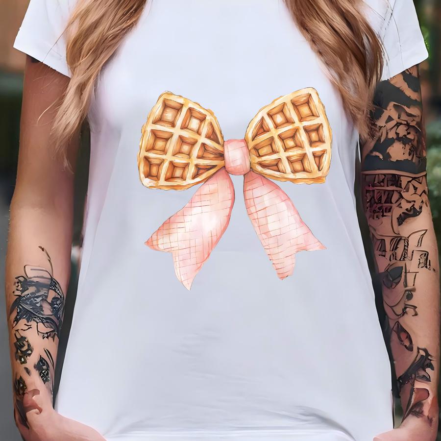 Waffle Coquette Bow Sweatshirt, Pink Waffle Breakfast Shirt, Cute Waffle Mom Sweatshirt, Breakfast Lover Shirt, Brunch Bridal Shower Gift T-shirt