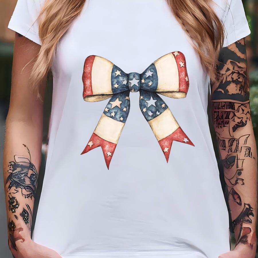 Vintage American Flag Coquette Bow Sweatshirt, Red White Blue Girly 4th Of July Sweater, Usa Flag Coquette Patriotic Gift For Wife T-shirt