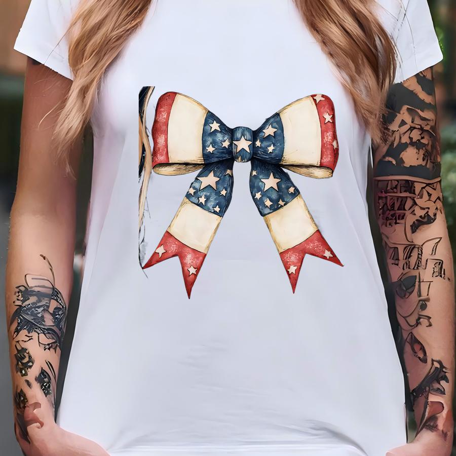 Vintage American Flag Coquette Bow Shirt, Red White Blue Girly July 4th, Usa Flag Coquette , Patriotic Gift For Wife T-shirt