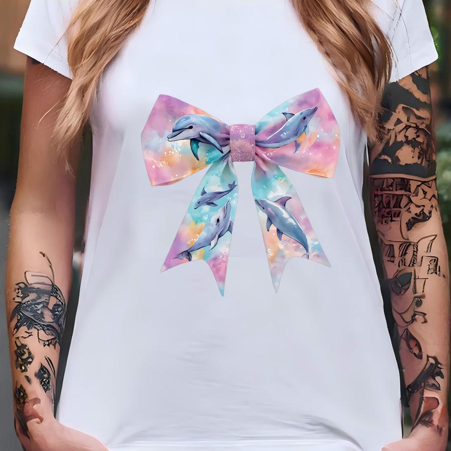 Dolphin Coquette Bow Sweatshirt, Cute Ocean Dolphin Shirt, Colorful Dolphin Sea Life Tee, Dolphin Lover Gift, Dolphin Beach Vacation Shirt T-shirt