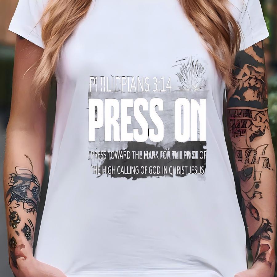 Christian Philippians 3:14 Press On Unisex Softstyle Hoodie, Religious Bible Verse Tee, Inspirational Christian Apparel, Faith Shirt Gift, T-shirt