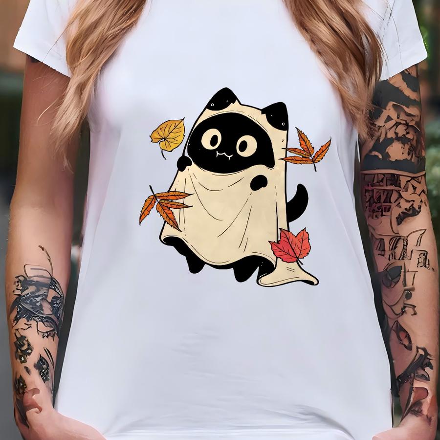 Black Cats Fall Shirt, Black Cats And Fall Leaves Tee, Cute Halloween Cat Tee, Autumn Cat Shirt, Cozy Cat Lover Gift T-shirt